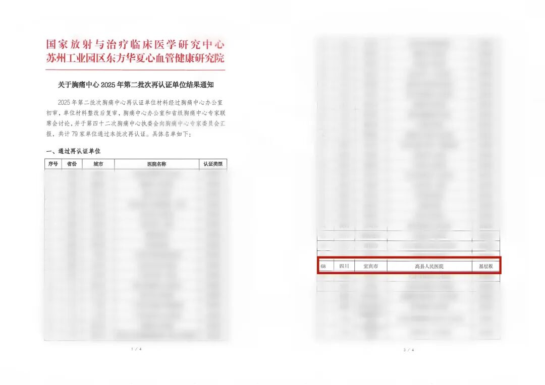 喜报 | 高县人民医院胸痛中心再认证,通过!