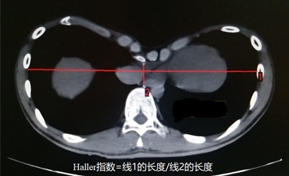 确定漏斗胸的严重程度的指标。即胸壁凹陷最低点的胸廓横径/凹陷最低点到椎体前的距离。