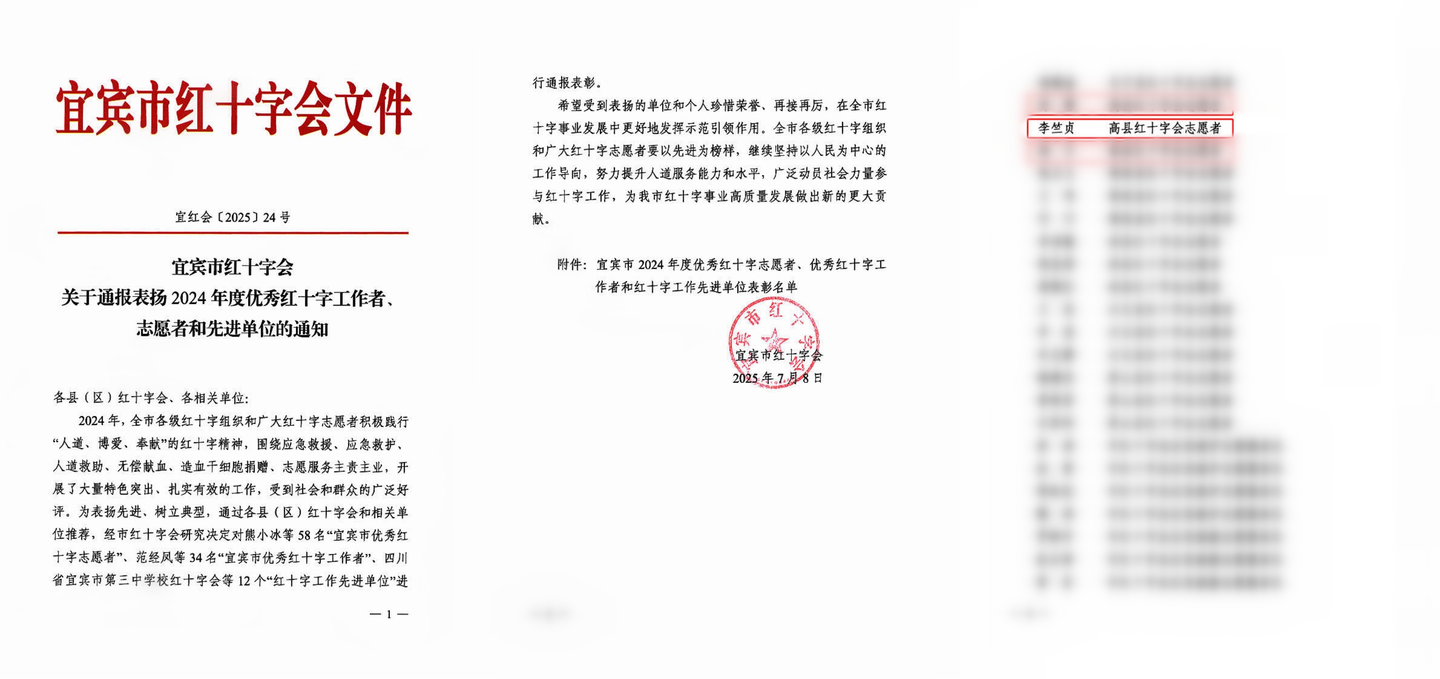 李竺贞同志获评宜宾市“2024年度优秀红十字志愿者”