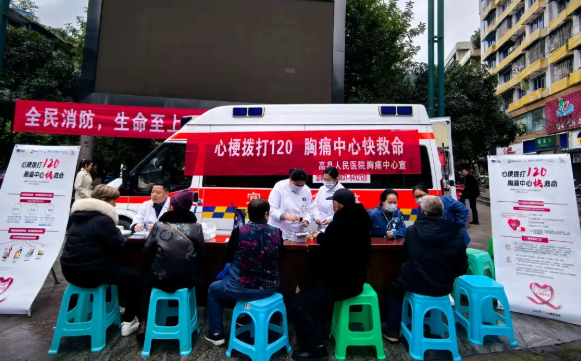来源: 时间:2025-11-20 17:09:07 2025年11月20日是我国第十二个“中国心梗救治日”。自2014年起,国家将每年11月20日定为“1120中国心梗救治日”,旨在普及急性心肌梗死的规范化救治流程,增强全民对心梗严重性与危害性的认识,提升整体救治水平。11月18日,高县人民医院内一病区(心血管内科)联合急诊科,在文江镇中心广场开展了“心梗拨打120,胸痛中心快救命”——2025年中国心梗救治日健康科普义诊活动。