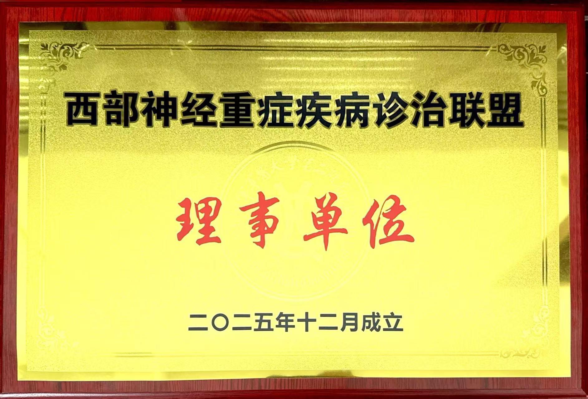 来源: 时间:2026-01-01 10:34:41 近日,西部神经重症疾病诊治联盟成立大会暨重庆卒中学会第七届学术年会在重庆圆满举行。会上,高县人民医院正式获授“西部神经重症疾病诊治联盟专科联盟理事单位”称号。此次授牌标志着我院神经内科融入西部神经重症诊疗协同发展体系,开启了与以陆军军医大学第二附属医院(新桥医院)为代表的区域顶尖医疗单位深度合作、资源共享、技术协同的新篇章。