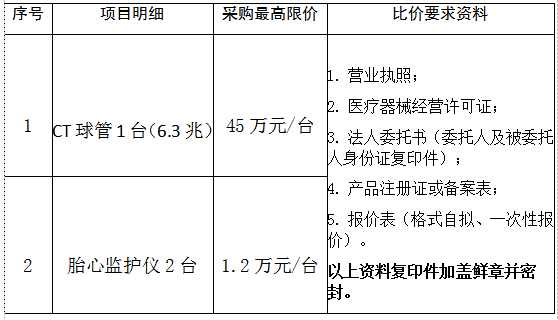 关于CT球管和胎心监护仪等设备采购公告