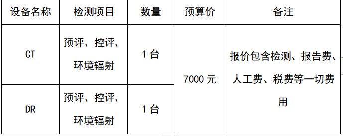 CT和DR预评、控评、环境辐射检测项目院内紧急采购的公告