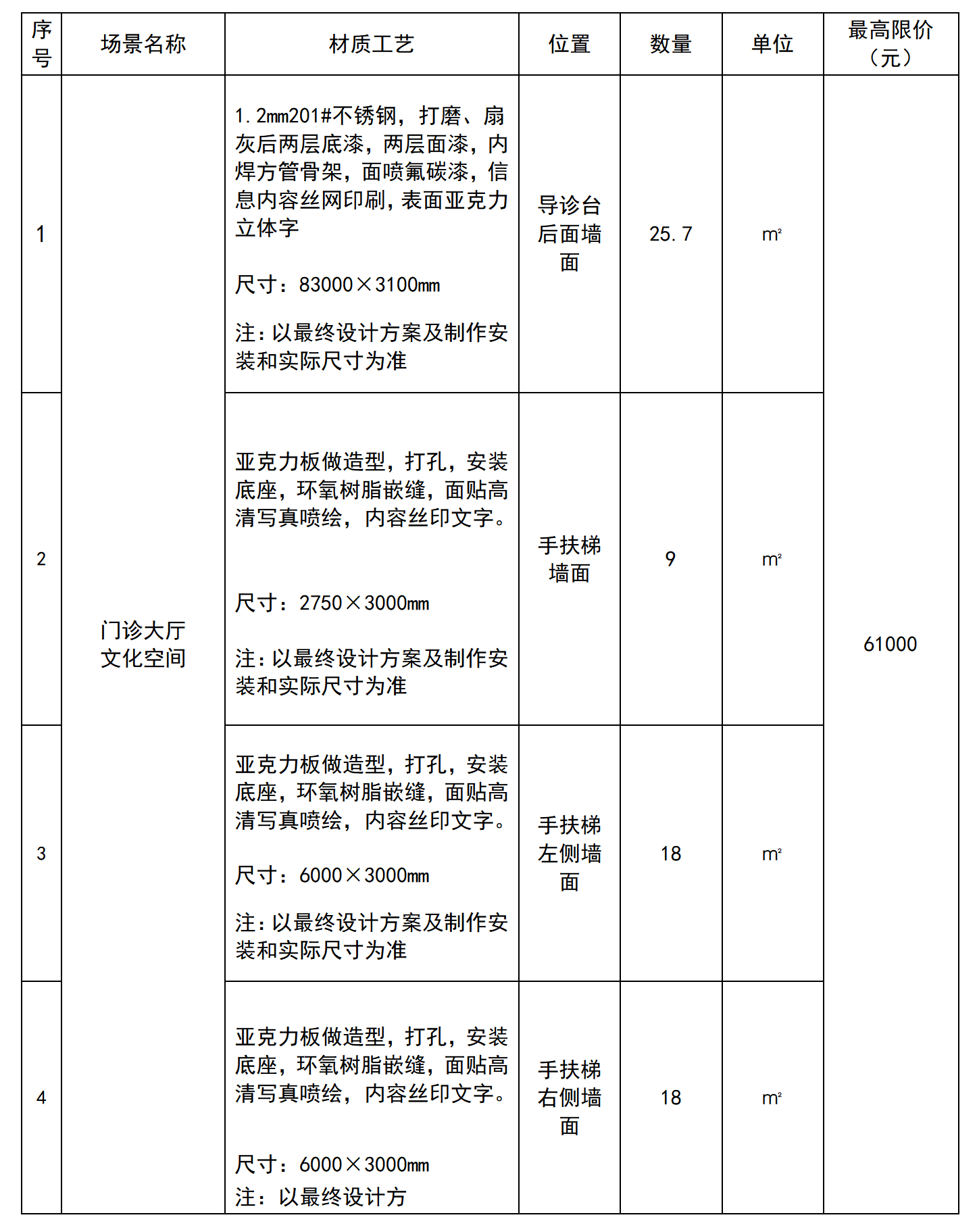 门诊外科大楼文化墙空间打造项目院内紧急采购的公告