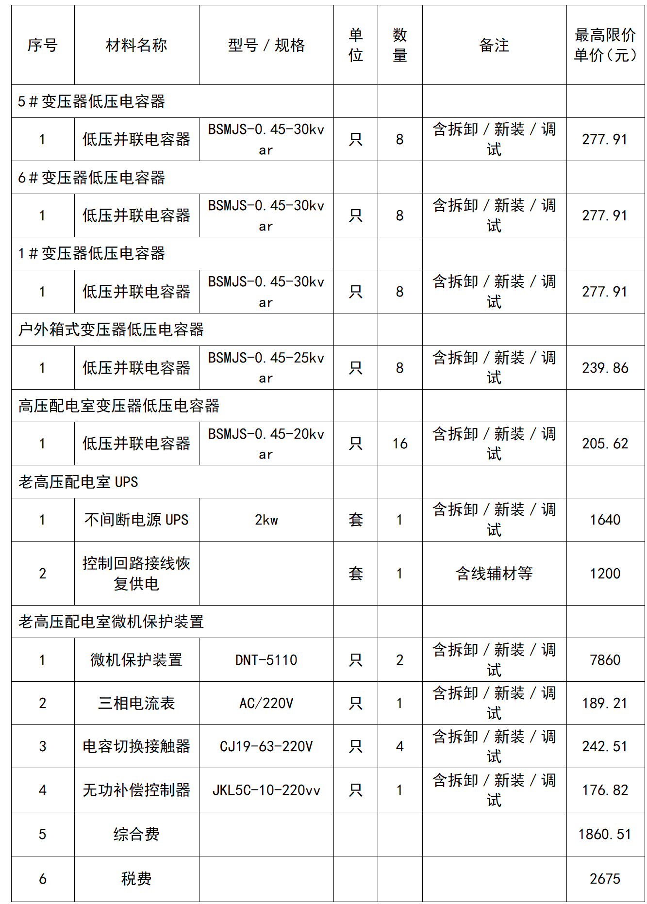 注:此次报价超过最高限价视为无效报价,报价包含拆卸、安装、调试、运输、税费等一切费用包干。
