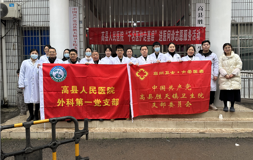 来源: 时间:2026-01-26 09:21:00 为深入贯彻党的二十大精神,切实解决人民群众日益增长的医疗医疗卫生需求,促进医疗服务精细化、同质化,提升基层服务能力,增强群众健康意识与疾病预防意识,引导群众树立正确的健康、培养健康生活方式,1月25日,高县人民医院外科第一党支部前往胜天镇卫生院,开展“千名医护走基层”送医问诊志愿服务活动。